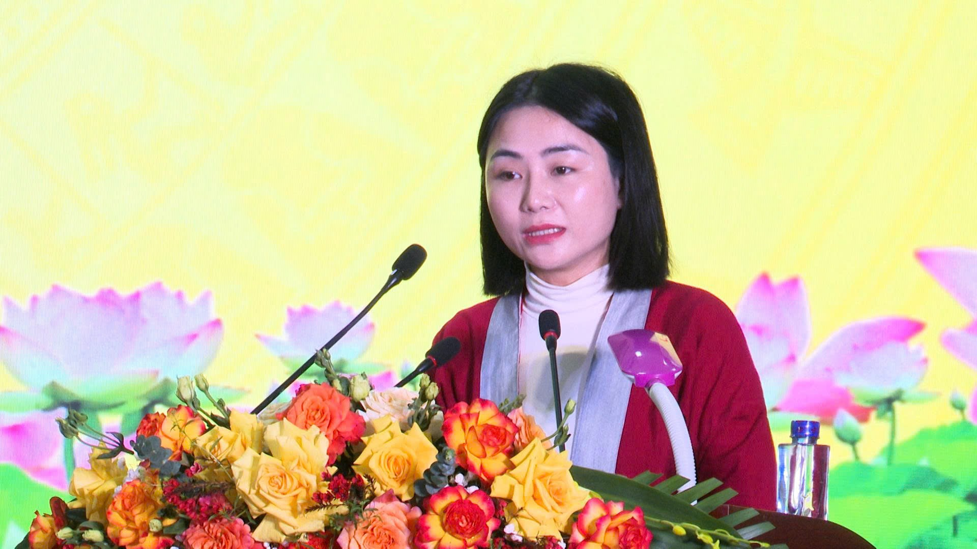 Bà Nguyễn Lê Ngọc Linh, Giám đốc Hợp tác xã Bản Thổ, xã Hóa Quỳ, tỉnh Thanh Hoá trình bày chương trình hành động