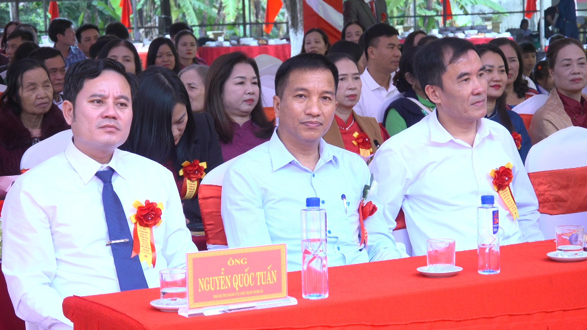 Tham dự có các đồng chí: Nguyễn Quốc Tuấn, Phó Bí thư Đảng ủy, Chủ tịch UBND xã Sao Vàng; Lê Xuân Bàn, Ủy viên Ban Thường vụ, Chủ tịch UBMTTQ xã. Các đồng chí lãnh đạo UBND, đại diện lãnh đạo các phòng, ban, ngành, đoàn thể xã Sao Vàng; Các đồng chí lãnh đạo phòng Giáo dục và Đào tạo huyện Thọ Xuân cũ; Đại diện Đội Cảnh sát giao thông số 3- Phòng Cảnh sát giao thông Công an tỉnh Thanh Hóa; Các đồng chí nguyên là lãnh đạp xã Xuân Phú cũ.