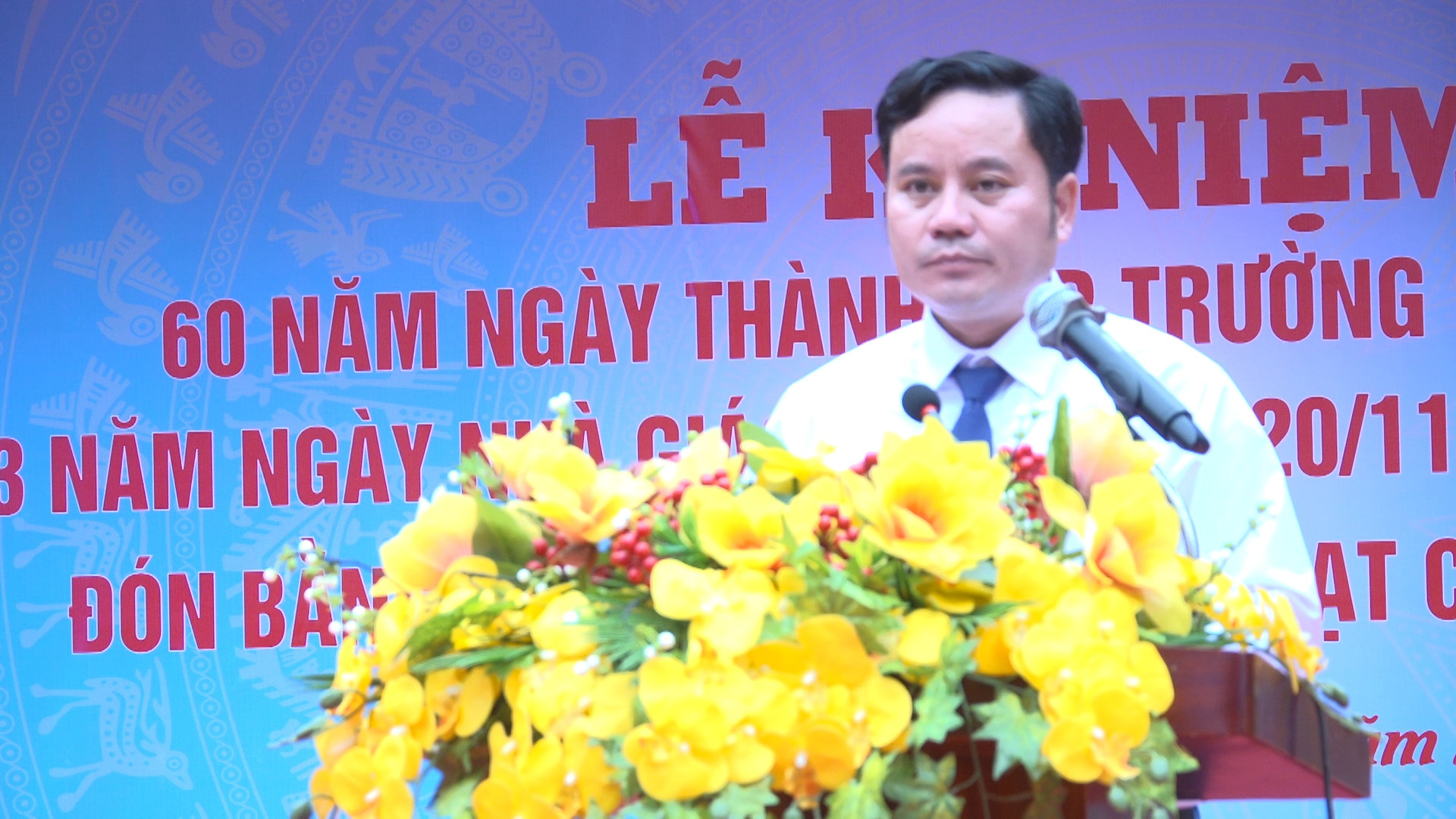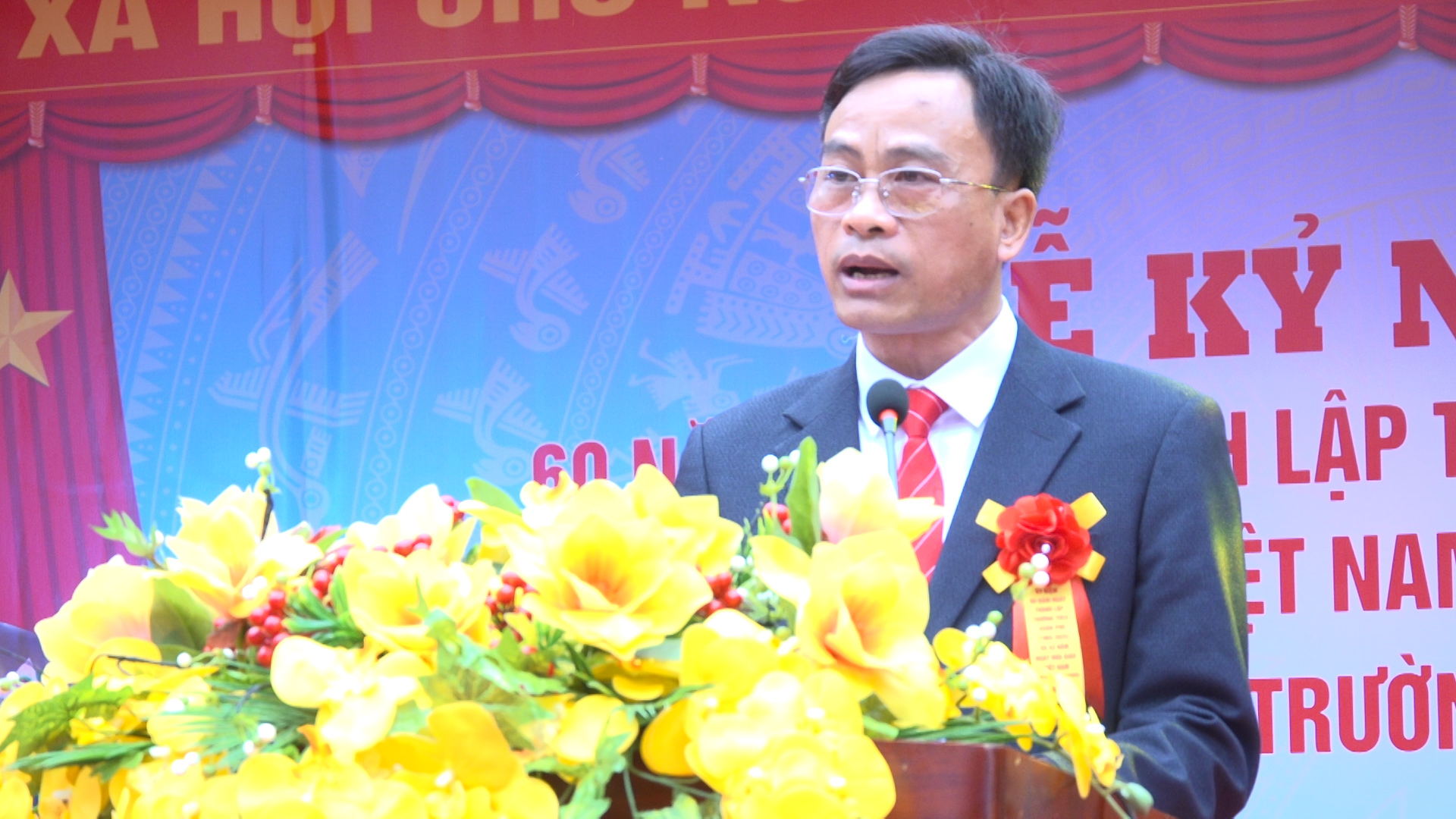 (Đại diện Cựu học sinh phát biểu chúc mừng trường THCS Xuân Phú)