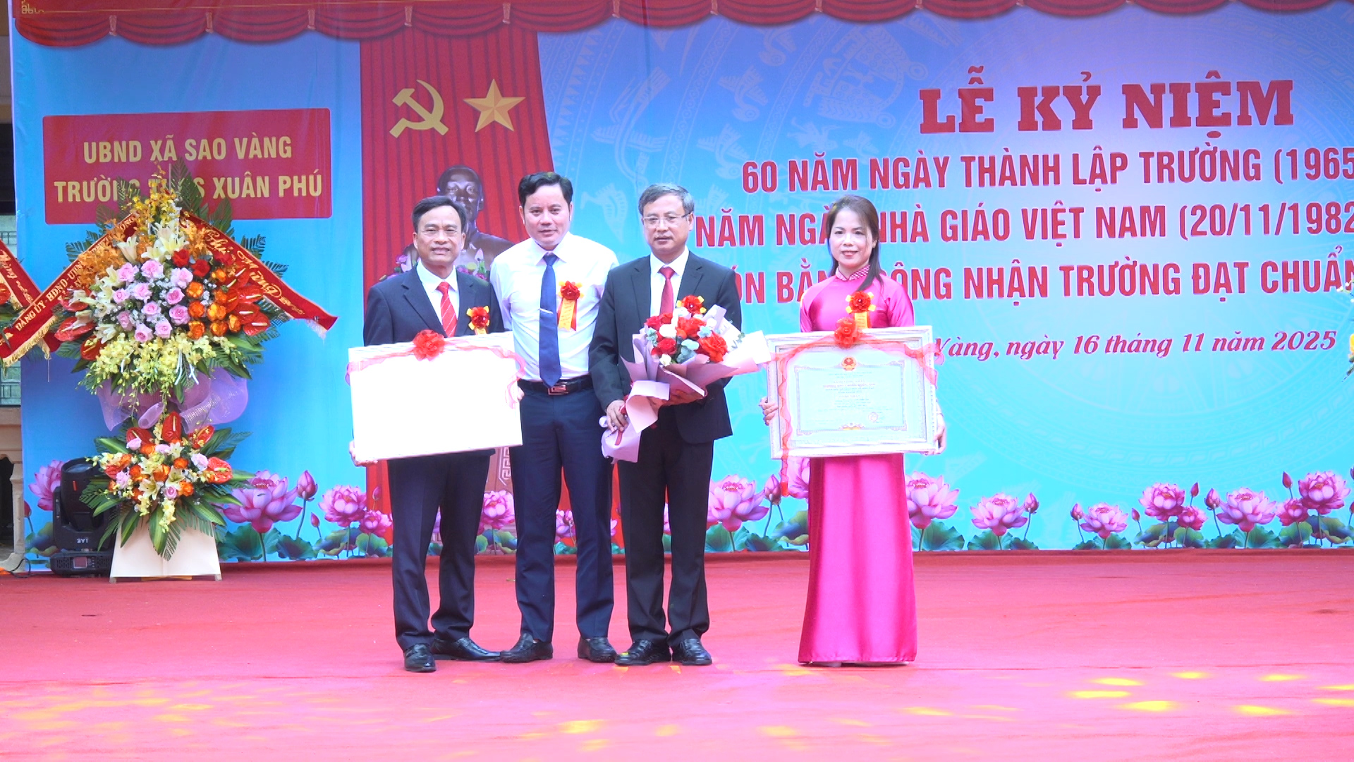 Sáng ngày 16/11, Trường THCS Xuân Phú (xã Sao Vàng) đã long trọng tổ chức Lễ kỷ niệm 60 năm thành lập trường (1965 - 2025); Kỷ niệm 43 năm Ngày Nhà giáo Việt Nam (20/11/1982 - 20/11/2025) và đón Bằng công nhận trường đạt chuẩn quốc gia.