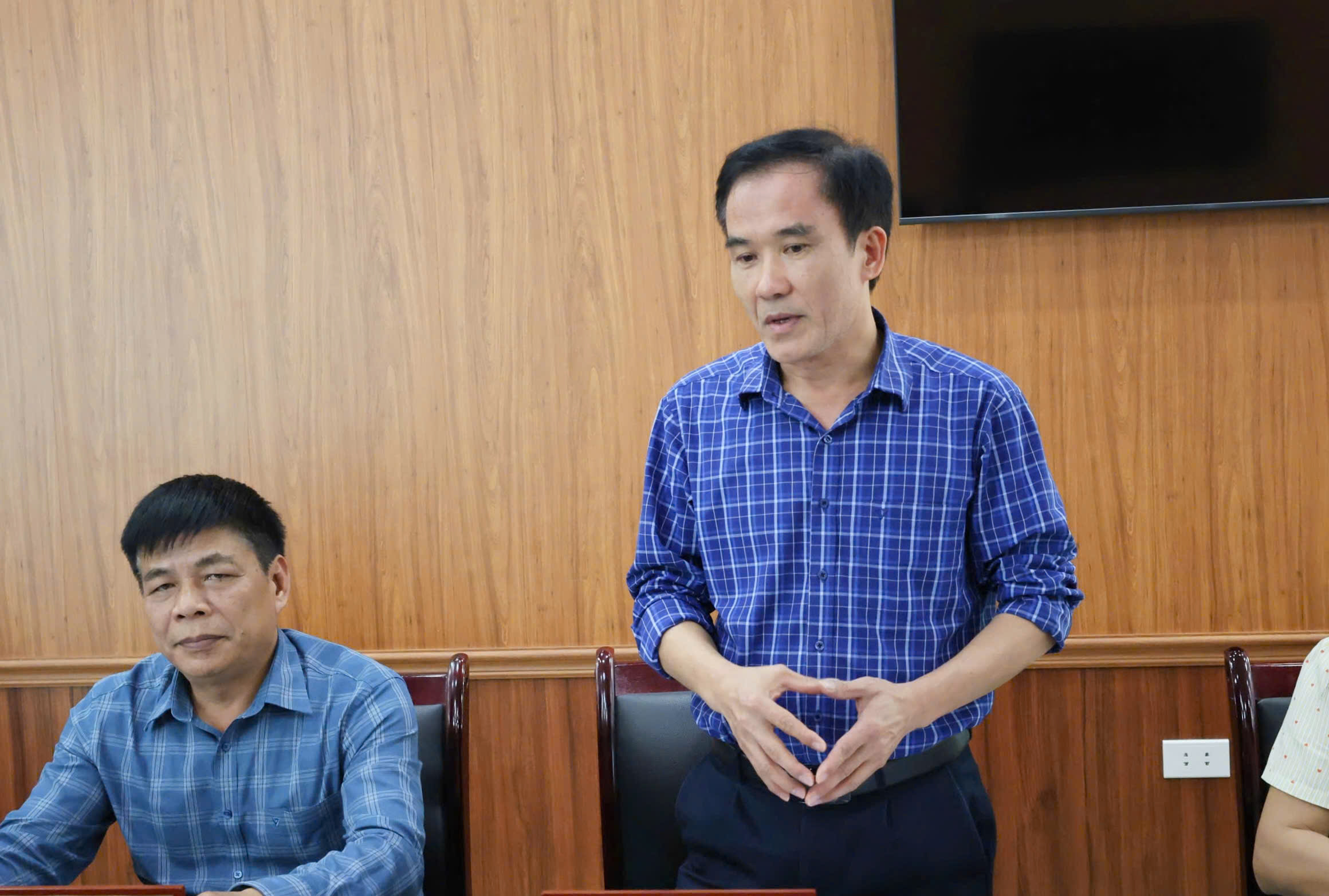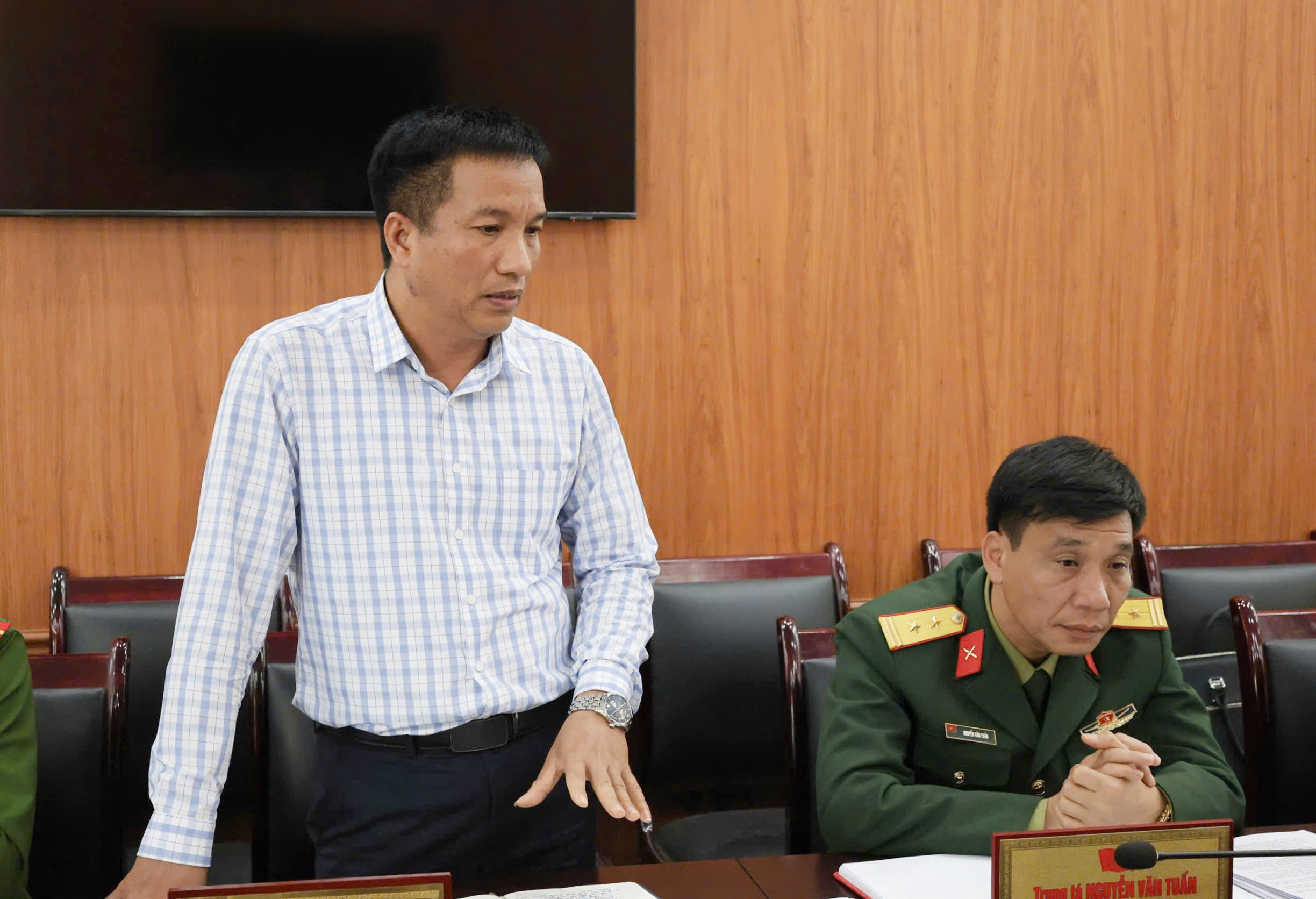 (Đồng chí Phó Trưởng phòng Kinh tế, UBND xã báo cáo tình hình quản lý đất nông trường trên địa bàn xã Sao Vàng)