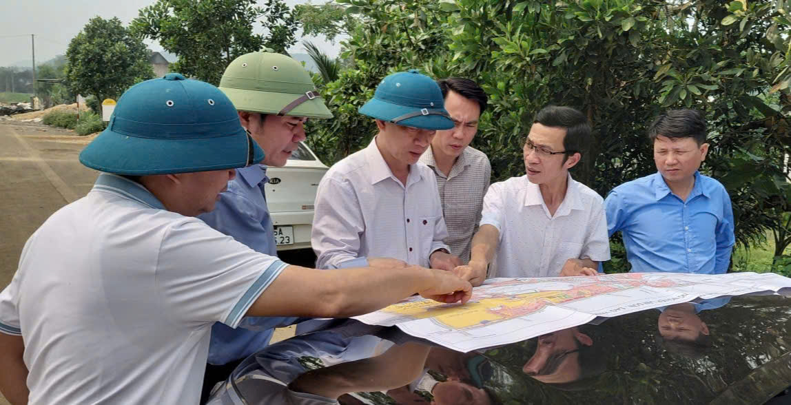 Đồng chí Bí thư Đảng uỷ, Chủ tịch HĐND xã Sao Vàng Mai Văn Hải kiểm tra công tác GPMB thực hiện các dự án trên địa bàn
