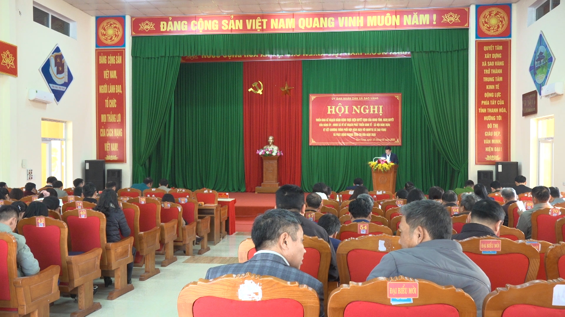 Tại hội nghị, UBND xã Sao Vàng cũng đã phát động phong trào thi đua năm 2026, kêu gọi toàn thể cán bộ, đảng viên, Nhân dân và các đơn vị trên địa bàn xã phát huy truyền thống đoàn kết, tinh thần đổi mới, thi đua lao động, sản xuất, công tác, học tập, góp phần xây dựng xã Sao Vàng ngày càng phát triển bền vững.