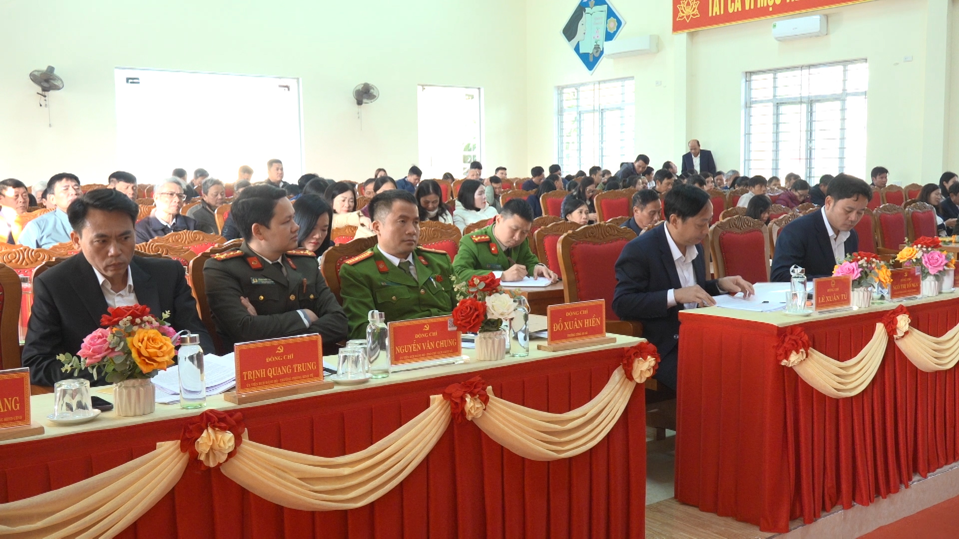 Dự Hội nghị có các đồng chí: Nguyễn Minh Hoàng, Ủy viên Ban Chấp hành Đảng bộ tỉnh, Bí thư Đảng ủy, Chủ tịch HĐND xã; Nguyễn Quốc Tuấn, Phó Bí thư Đảng ủy, Chủ tịch UBND xã. Các đồng chí Uỷ viên Ban Thường vụ Đảng ủy. Các đồng chí Thường trực HĐND – UBND – UBMTTQ xã, Trưởng các Ban Đảng; trưởng các phòng, ngành, trung tâm thuộc UBND xã. Đại diện Công an xã, Ban Chỉ huy Quân sự xã, Hiệu trưởng các trường học, các trạm Y tế. Cán bộ, công chức, viên chức, người lao động thuộc UBND xã. Các đồng chí Bí thư chi bộ, Trưởng thôn trên địa bàn xã.