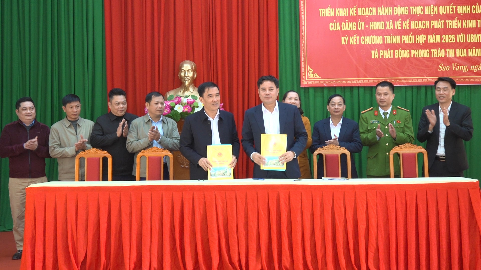 Sáng 12/1/2026, UBND xã Sao Vàng tổ chức Hội nghị triển khai Kế hoạch hành động thực hiện các Nghị quyết, Quyết định của UBND tỉnh và của Đảng uỷ - HĐND xã về Kế hoạch phát triển Kinh tế - Xã hội năm 2026; ký kết chương trình phối hợp năm 2026 với Uỷ ban Mặt trận Tổ quốc xã.
