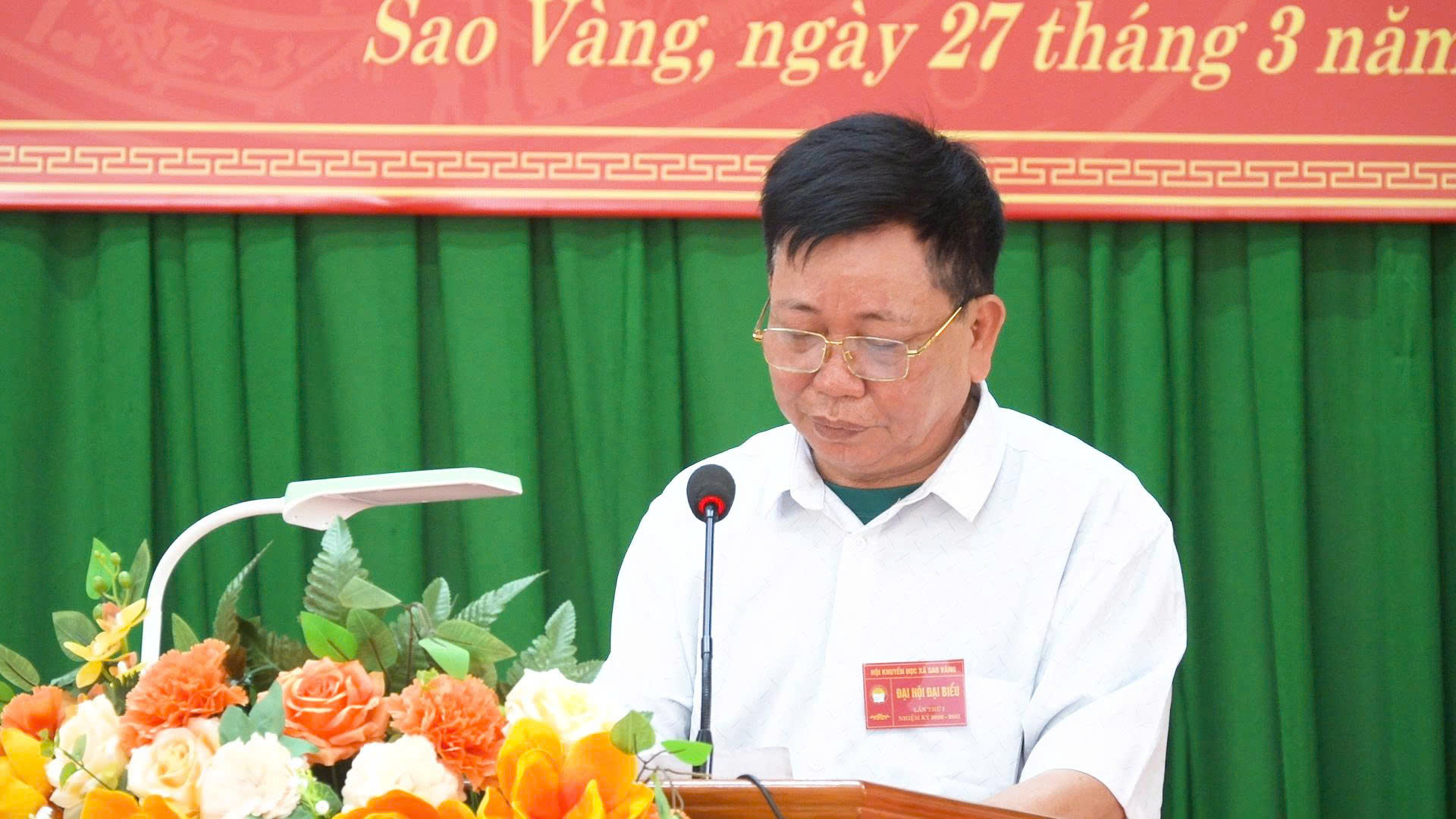 Phát biểu chỉ đạo tại Đại hội, đồng chí Phan Quang Vinh, nguyên Phó Trưởng ban Tổ chức Tỉnh ủy, Phó Chủ tịch Hội Khuyến học tỉnh và đồng chí Nguyễn Văn Chung, Ủy viên Ban Chấp hành Đảng bộ xã, Phó Chủ tịch UBND xã Sao Vàng ghi nhận và biểu dương những kết quả đạt được trong nhiệm kỳ qua của cán bộ, hội viên Hội Khuyến học xã. Đồng thời định hướng một số nhiệm vụ trọng tâm trong thời gian tới.