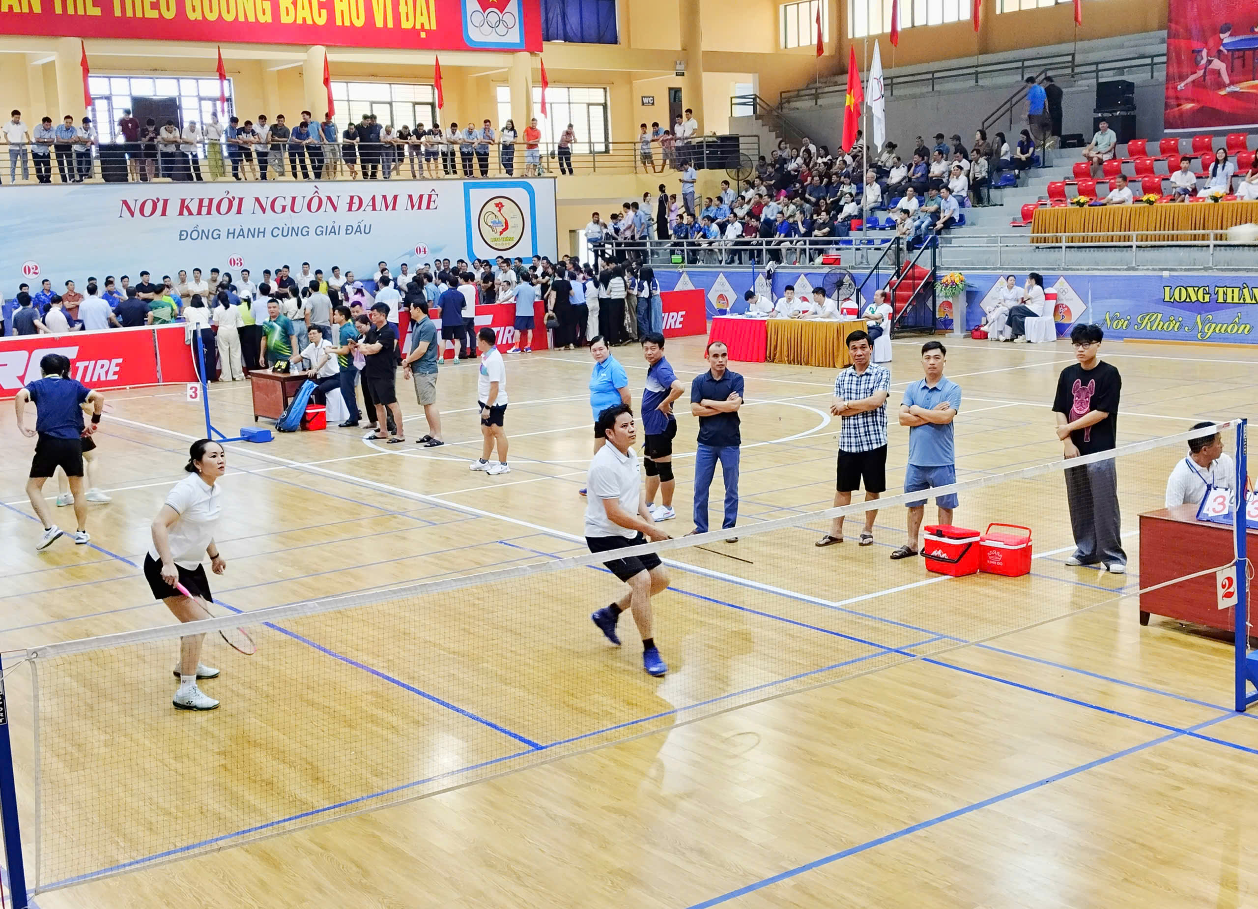 Đồng chí Nguyễn Quốc Tuấn, Phó Bí thư Đảng ủy, Chủ tịch UBND xã Sao Vàng ghép đôi cùng đồng chí Lương Thị Tuân, Bí thư Đảng ủy xã Tam Chung tham gia nội dung cầu lông đôi nam nữ thuộc nhóm 45 tuổi trở xuống.