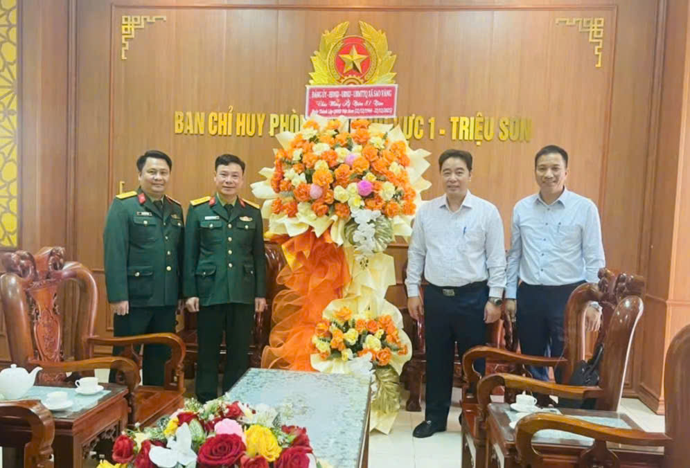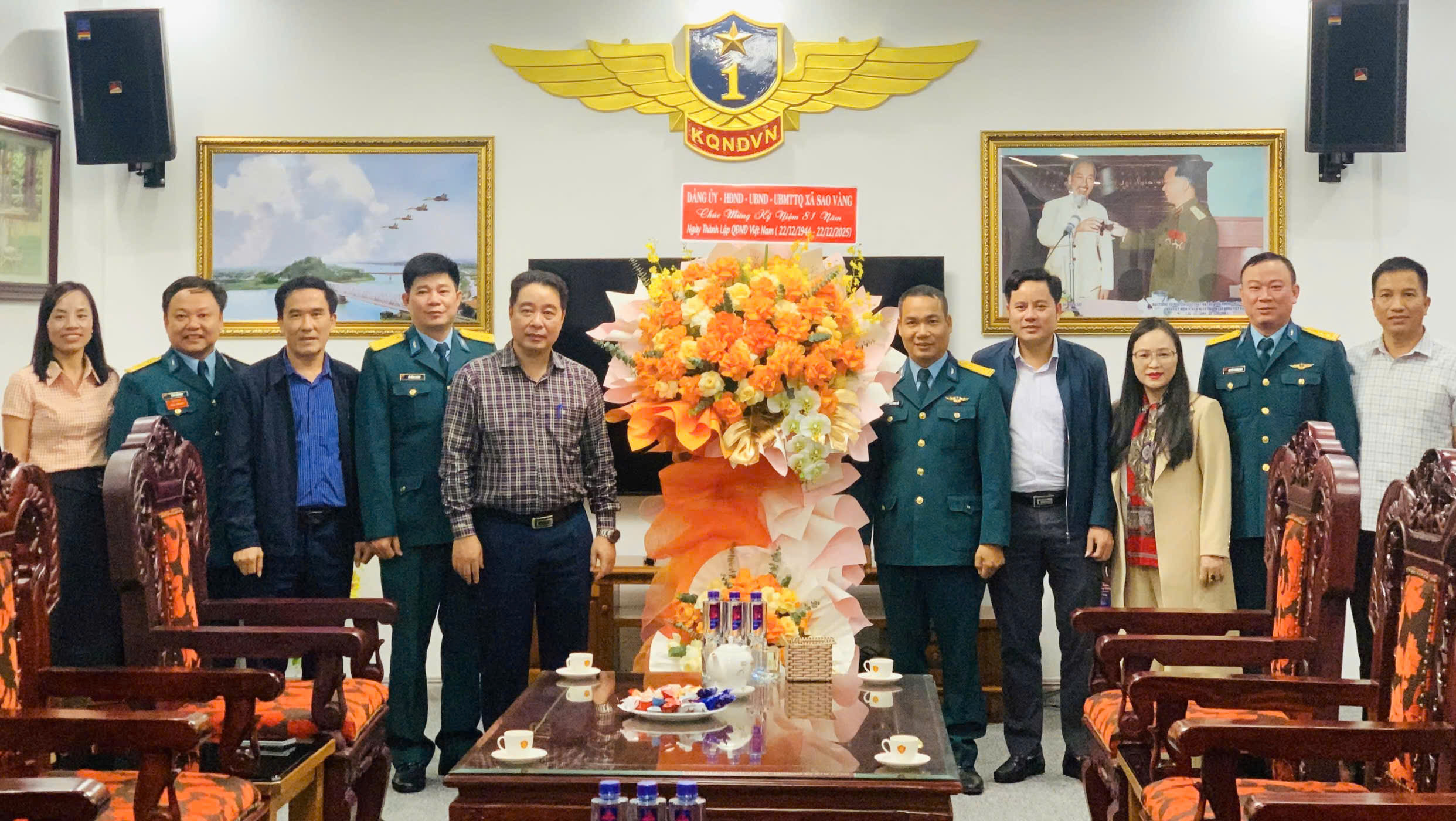Nhân kỷ niệm 81 năm Ngày thành lập Quân đội nhân dân Việt Nam (22/12/1944 – 22/12/2025) và 36 năm Ngày hội Quốc phòng toàn dân (22/12/1989 – 22/12/2025), các đồng chí lãnh đạo xã Sao Vàng do đồng chí Nguyễn Minh Hoàng, Ủy viên Ban Chấp hành Đảng bộ tỉnh, Bí thư Đảng ủy, Chủ tịch HĐND xã làm Trưởng đoàn đã đến tặng hoa, chúc mừng cán bộ, chiến sĩ Trung đoàn Không quân 923 và Ban Chỉ huy Phòng thủ khu vực 1 - Triệu Sơn.
