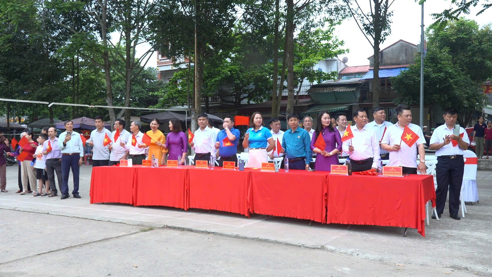 Tham dự Lễ khai mạc có các đồng chí: Phan Thanh Dũng, Phó Bí thư Thường trực Đảng ủy xã; Nguyễn Quốc Tuấn, Phó Bí thư Đảng ủy, Chủ tịch UBND xã; Các đồng chí Uỷ viên BTV Đảng ủy, Thường trực HĐND, lãnh đạo UBND xã; Đồng chí Chủ tịch Uỷ ban MTTQ Việt Nam xã Sao Vàng; Các đồng chí lãnh đạo Ban Xây dựng đảng, UBKT, Văn phòng Đảng ủy; Các Ủy viên UBND xã; Các đồng chí Trưởng, Phó Trưởng Công an xã; Các đồng chí Chỉ huy trưởng, Phó chỉ huy trưởng BCH Quân sự xã; Các đồng chí Phó Chủ tịch Uỷ ban MTTQ xã; Trưởng, phó các phòng, ngành, trung tâm thuộc UBND xã; Cán bộ, công chức, viên chức, người lao động thuộc Đảng uỷ - HĐND - UBND - UBMTTQ xã; Ban giám hiệu các nhà trường; Các đồng chí Trưởng trạm y tế trên địa bàn; Các đồng chí Bí thư, trưởng thôn trên địa bàn. Các vận động viên, Huấn luyện viên, lực lượng tham gia diễu hành cùng đông đảo Nhân dân đến xem và cổ vũ.