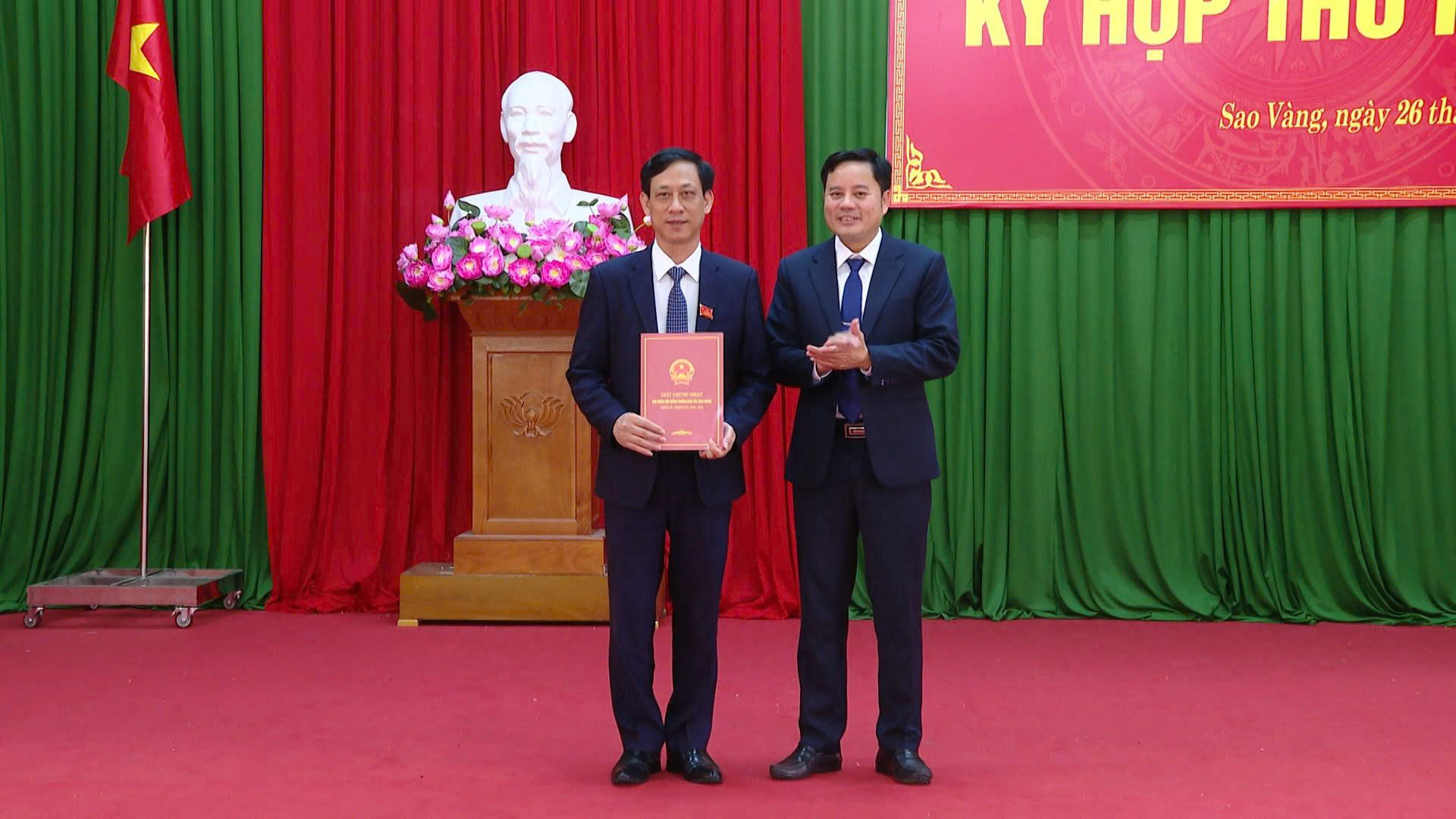 Cùng với đó, HĐND xã đã bầu chức danh Ủy viên UBND xã nhiệm kỳ 2026 - 2031 đối với 05 đồng chí theo đúng quy định, gồm các đồng chí: Đỗ Văn Hiền, Trưởng Công an xã; Nguyễn Văn Tuấn, Chỉ huy trưởng Ban CHQS xã; Ngô Khắc Giang, Chánh Văn phòng HĐND - UBND xã; Nguyễn Văn Bảy, Trưởng phòng Văn hóa - Xã hội xã; Trịnh Quang Trung, Trưởng phòng Kinh tế xã Sao Vàng.